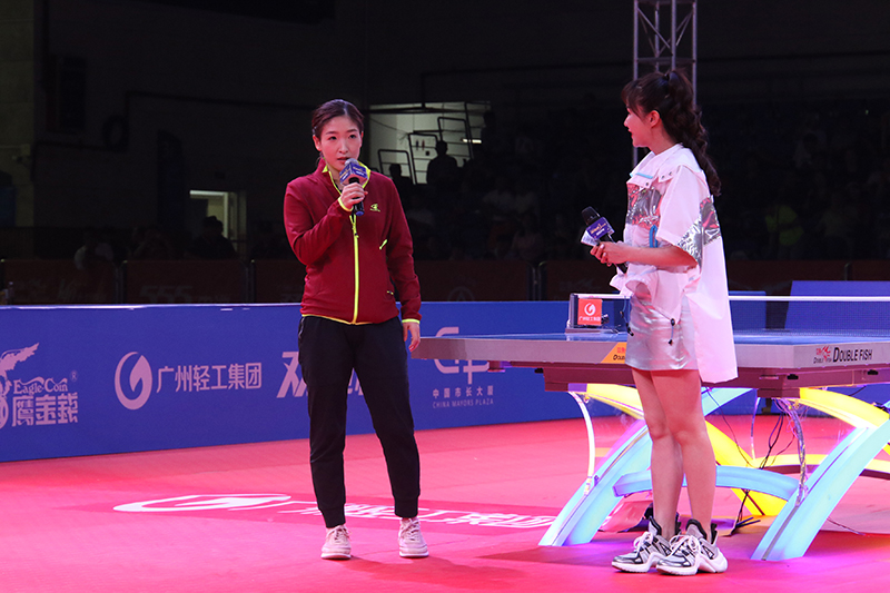双鱼形象代言人刘诗雯闪降赛场,为比赛开球、与球迷互动送歌等活动彻底引爆前来观赛的粉丝们!刘诗雯在2019年可谓大丰收,先后夺得五个重要比赛的四项冠军!刘诗雯对双鱼品牌给予自己的关注、支持表示深深的感谢,在即将到来的乒联总决赛和东京奥运会,刘诗雯将继续全力以赴,她也希望广大乒乓球爱好者能够陪伴国乒一起战东京!