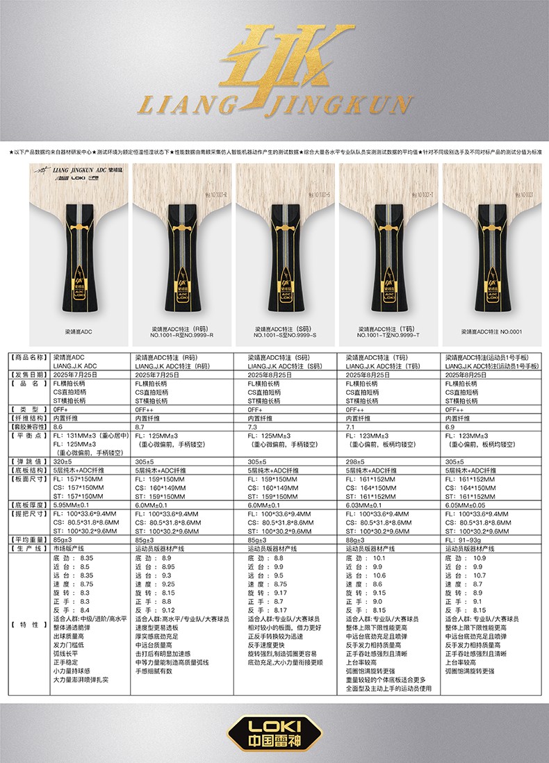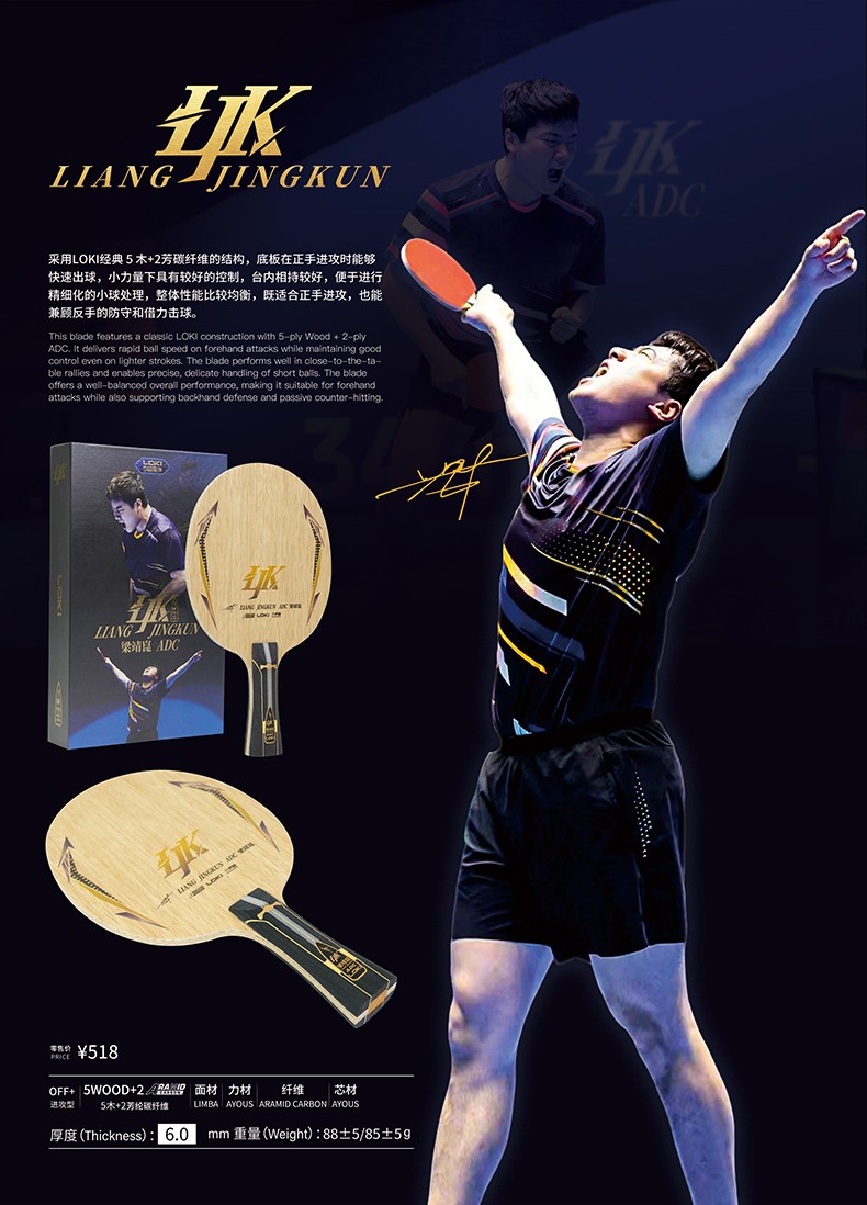 商品名称:Loki雷神梁靖崑ADC特注(R码)专业乒乓球拍底板内置5+2碳素纤维底板(送钥匙扣+保护膜2片)